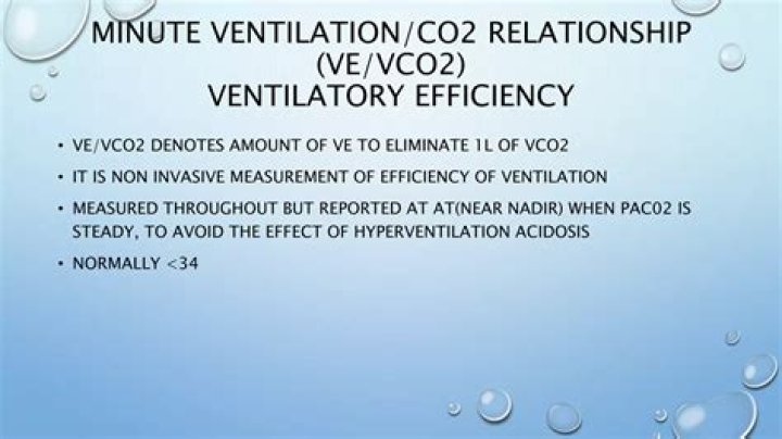 • Ventilatory Equivalents for Oxygen (VE/VO2): refers to number of liters of. ventilation per liter of oxygen consumed. The normal value is typically around. 25-30 and increases once the person reaches their ventilatory threshold.