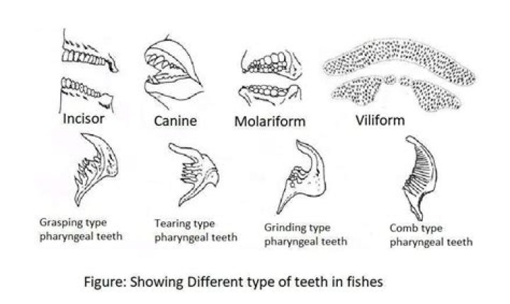Villiform teeth are elongated teeth that are very long and fine and are used for stabbing and direction. They are more common on deep see fishes such as this black dragonfish: The moray eel is interesting in that its pharyngeal teeth are modified.