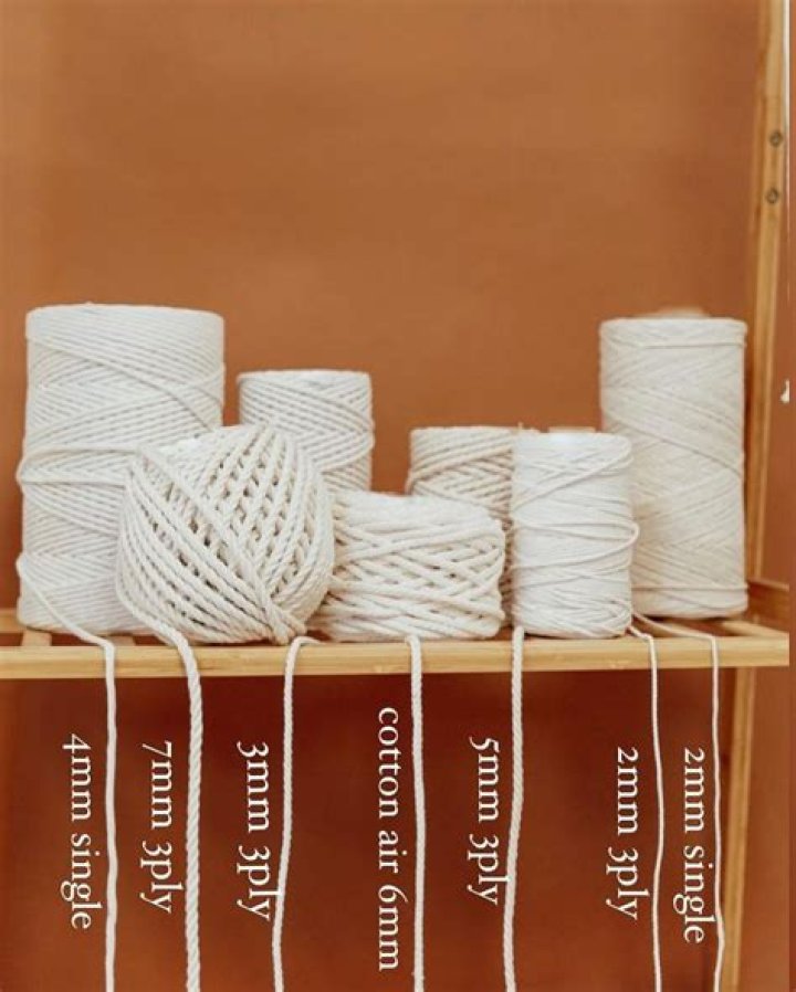 Medium Ropes, 4mm-7mm are perhaps most commonly used, a great size for macramé beginners, more sturdy than the smaller ropes and the perfect size for plant hangers, wall hangings, furniture, lanterns, curtains, rugs, etc.