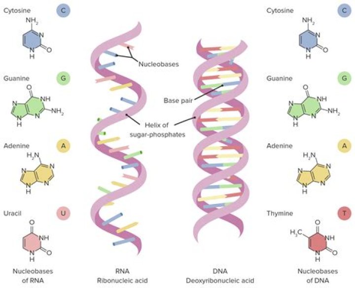 Five nucleobases—adenine (A), cytosine (C), guanine (G), thymine (T), and uracil (U)—are called primary or canonical. They function as the fundamental units of the genetic code, with the bases A, G, C, and T being found in DNA while A, G, C, and U are found in RNA.