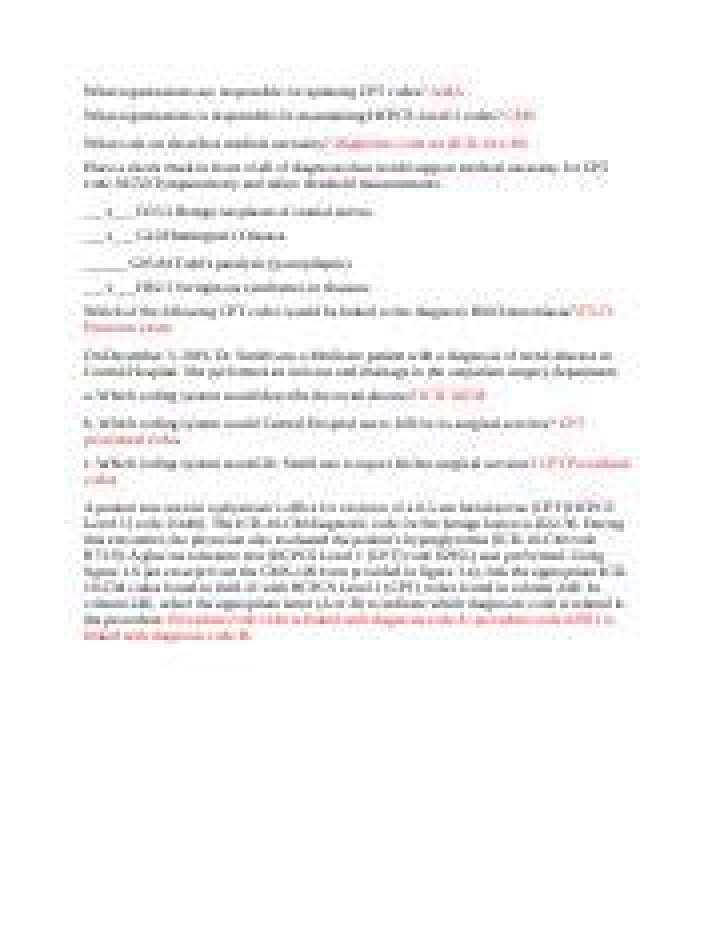 The Current Procedural Terminology (CPT) code set is a medical code set maintained by the American Medical Association through the CPT Editorial Panel.