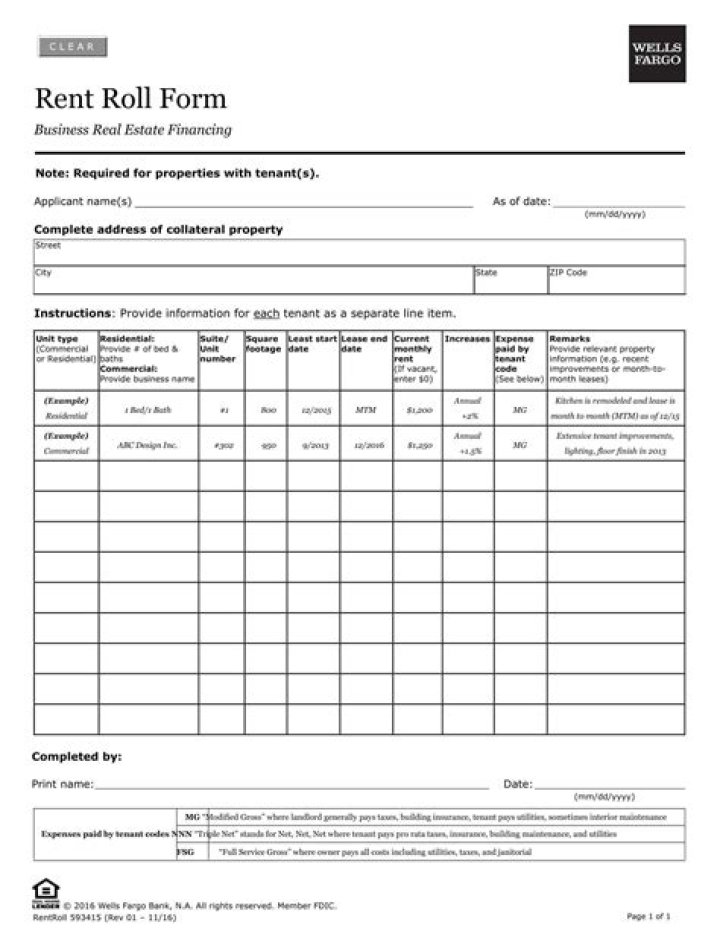 What should be included in a rent roll?