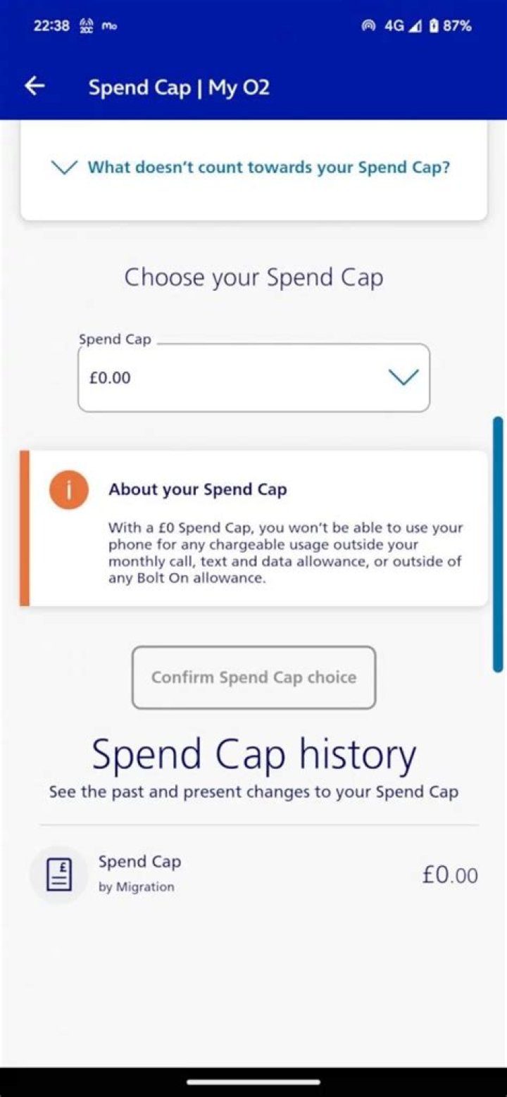 Whats a spend cap o2?