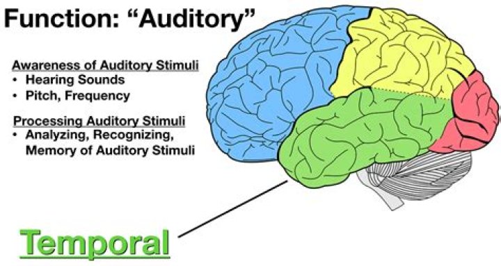 The temporal lobe contains the primary auditory complex. This is the first area responsible for interpreting information in the form of sounds from the ears. The temporal lobe receives different frequencies, sounds, and pitches from the ears, and gives them meaning.