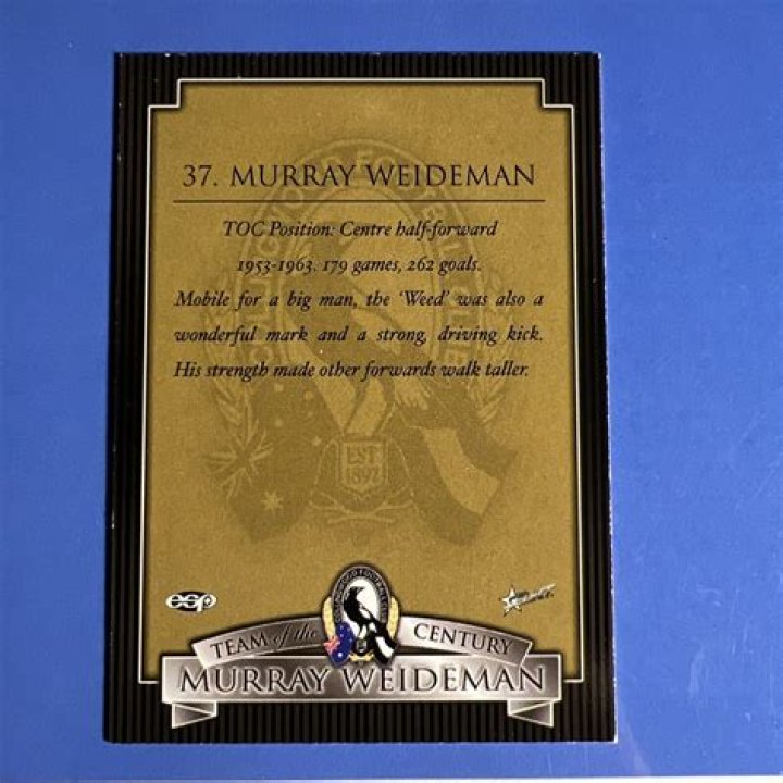 Murray Weideman was an Australian rules footballer in the Victorian Football League. He died one day after his 85th birthday.