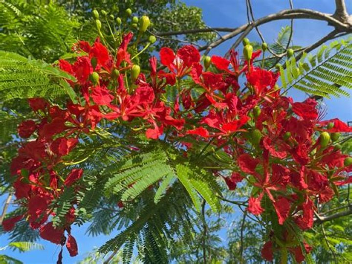 ANSWER: By May or June you should see the first bright red flowers that make the flamboyant tree, also called royal poinciana, a garden favorite. It grows well in South Florida and warmer locations of Central Florida.