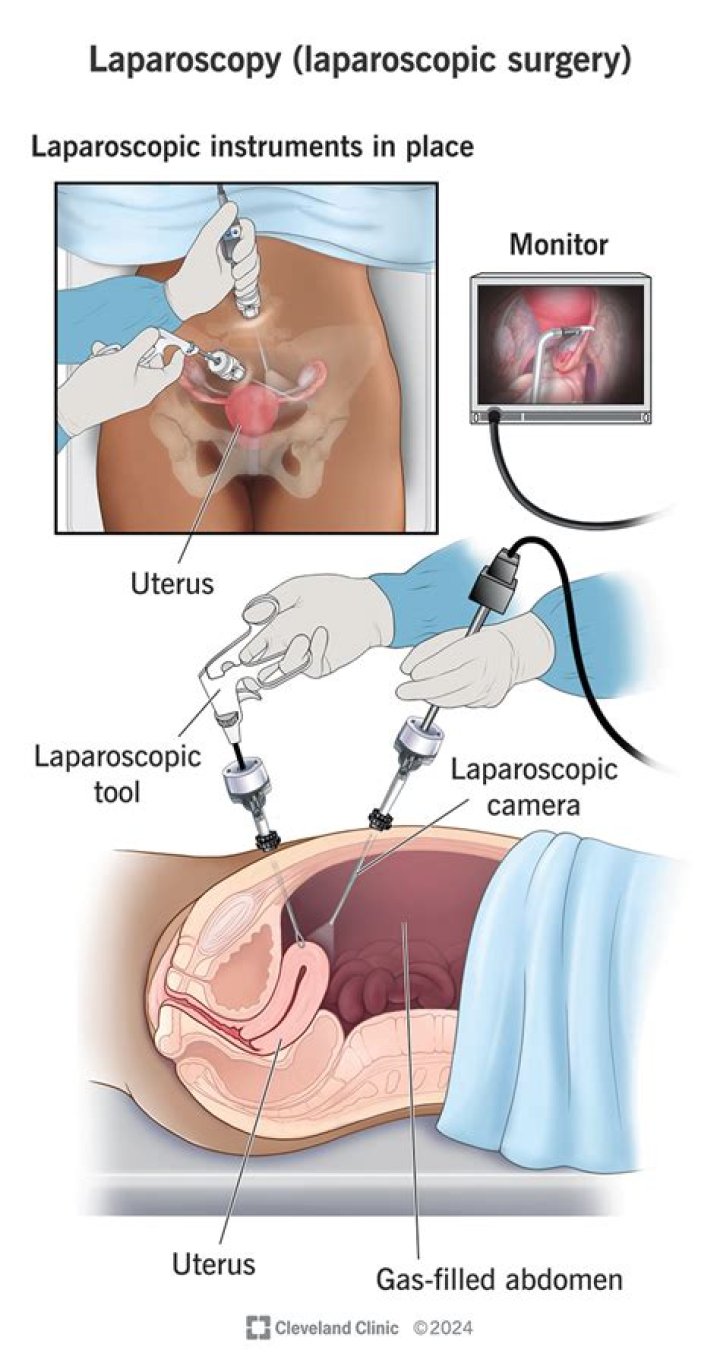 Laparoscopic surgery is a safe alternative to open surgery where a long probe with a camera at one end is inserted into the abdominal cavity and subsequently three small incisions are made to insert the medical equipment needed for the procedure.