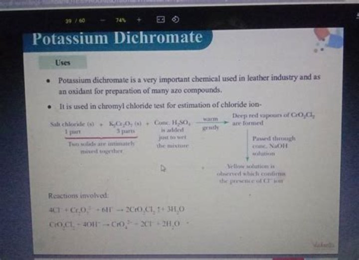 What happens when KCL is heated with H2SO4 and potassium dichromate?