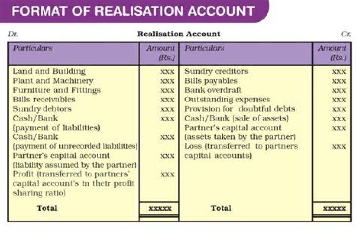 Realisation Account is a nominal account which is prepared at the time of dissolution of firm. Realisation account is prepared It is prepared to realize the various assets and pay off the liabilities.