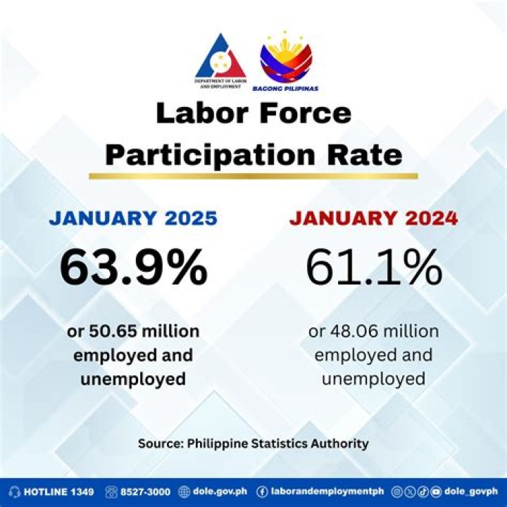 The labor force is the sum of employed and unemployed persons. The labor force participation rate is the labor force as a percent of the civilian noninstitutional population.