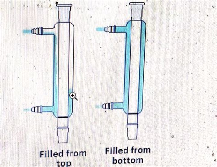 When water-cooled condensers are used for distillation or for refluxing a liquid, the water enters the condensers at the lowest point and leaves at the highest.