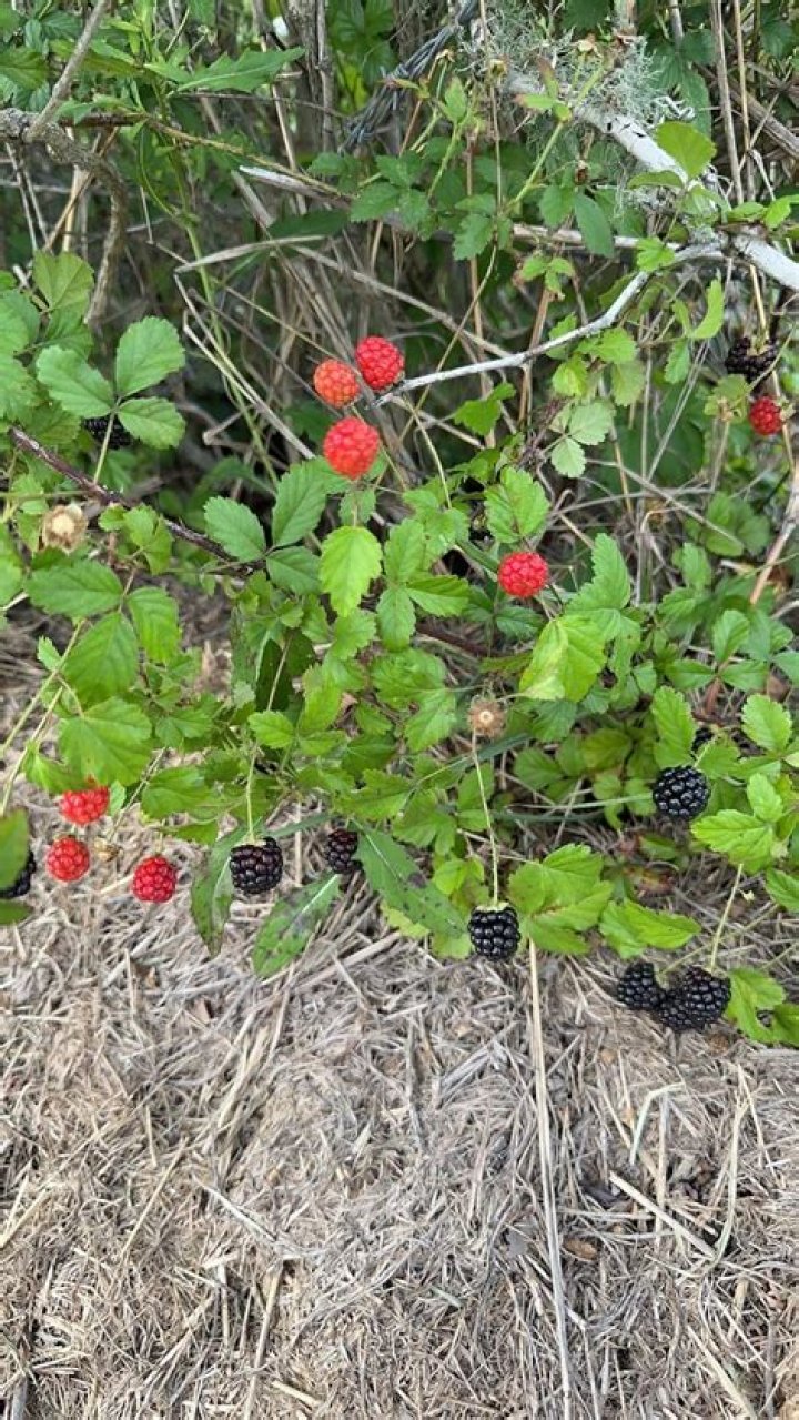 “The colloquial term for them is dewberries, but they're just a different species of blackberry than the cultivated ones we grow.” Dewberries have smaller fruit and grow with trailing stems along the ground, whereas cultivated blackberries have larger fruit and a more upright growth pattern.