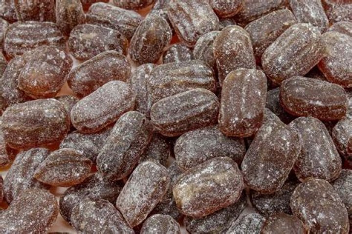 Horehound candy drops are bittersweet hard candies like cough drops that are made with sugar and an extract of M. vulgare. They are dark-colored, dissolve in the mouth, and have a flavor that has been compared to menthol and root beer.