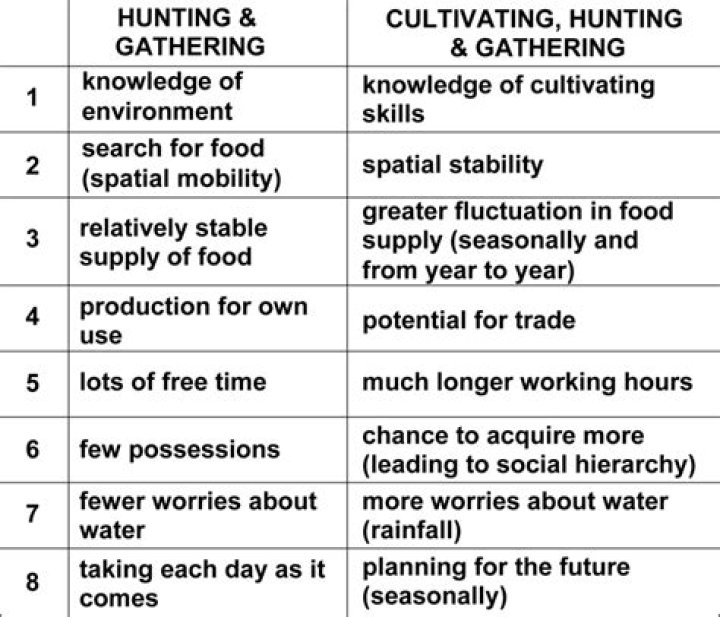 What is the difference between hunting and gathering and agriculture?