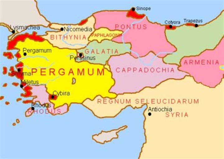 Pergamum, Greek Pergamon, ancient Greek city in Mysia, situated 16 miles from the Aegean Sea on a lofty isolated hill on the northern side of the broad valley of the Caicus (modern Bakır) River. The site is occupied by the modern town of Bergama, in the il (province) of İzmir, Turkey.