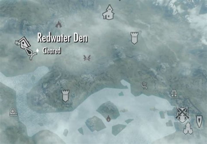 Redwater Den is a location in The Elder Scrolls V: Dawnguard. It lies west of Boulderfall Cave, between the Atronach Stone and Faldar's Tooth. From above the surface it appears to be just a ruined cottage, but it has a trapdoor which leads to an underground area.