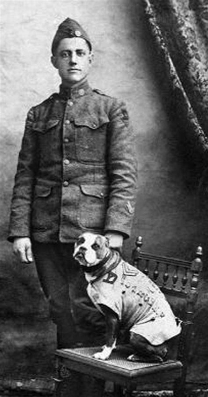 1. Sergeant Stubby—The Most Decorated Dog of World War I. On a fateful day in 1917, a stray pit bull mix wandered onto the Yale University campus while members of the 102nd Infantry Regiment were training. This lost pup fit right in, participating in drills and even learning to salute with his right paw.