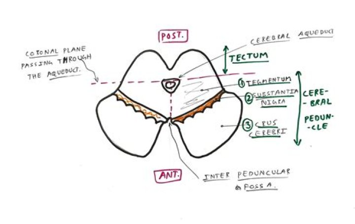 Midbrain and pons nuclei and tracts. ... The tectum is the region of the midbrain that is posterior to the cerebral aqueduct of Sylvius. It contains the nuclei of the superior and inferior colliculi. Between the cerebral aqueduct and the pars compacta of the substantia nigra, is the tegmentum.