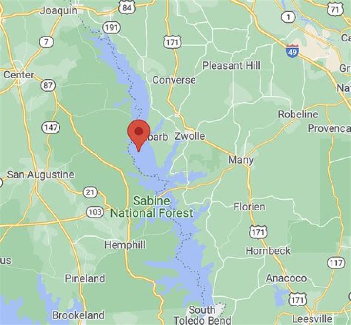 Toledo Bend Reservoir is a reservoir on the Sabine River between Texas and Louisiana. The lake has an area of 185,000 acres (749 km²), the largest man-made body of water partially in both Louisiana and Texas, the largest in the South, and the fifth largest by surface acre in the United States.