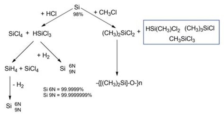 What chemicals are used to make silicone?