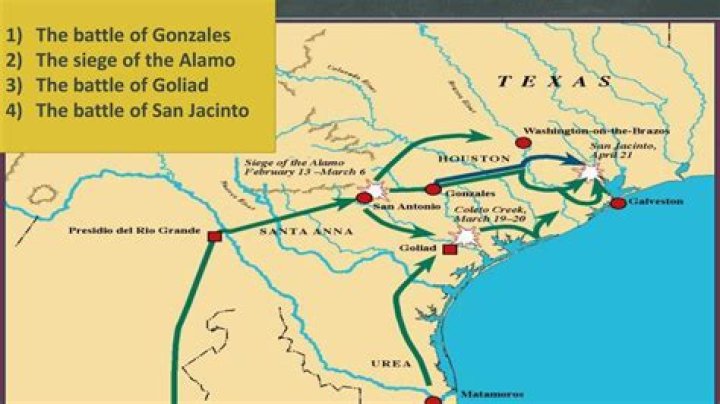 In 1836 Santa Anna marched into Texas to quell a rebellion primarily by U.S. settlers there. ... His army defeated Texan forces at the Alamo and Goliad before moving eastward to the San Jacinto River, where he was defeated and captured by Gen. Sam Houston.