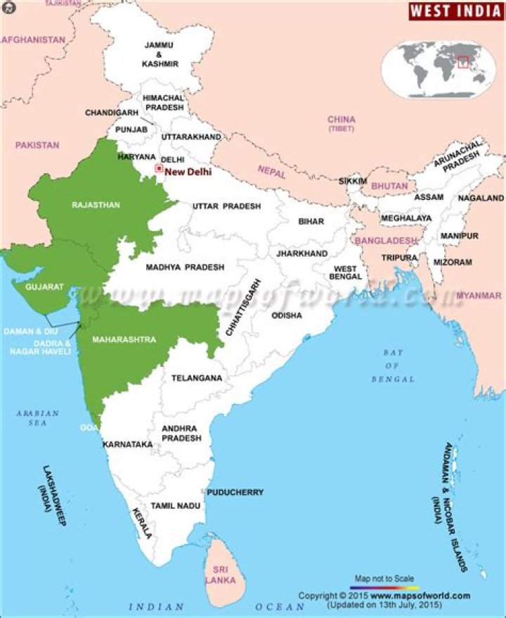 Where is Gujarat in India East or West?