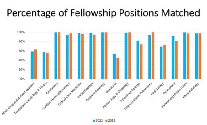 In order, the five most competitive fellowships were Gastroenterology (GI), Rheumatology (RHEUM), Cardiovascular Diseases (CVD), Pulmonary Disease and Critical Care Medicine (PCCM), and Hematology and Oncology (HEME).