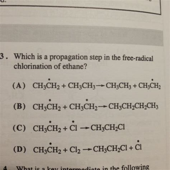 Which is a propagation step in the free-radical chlorination of ethane?