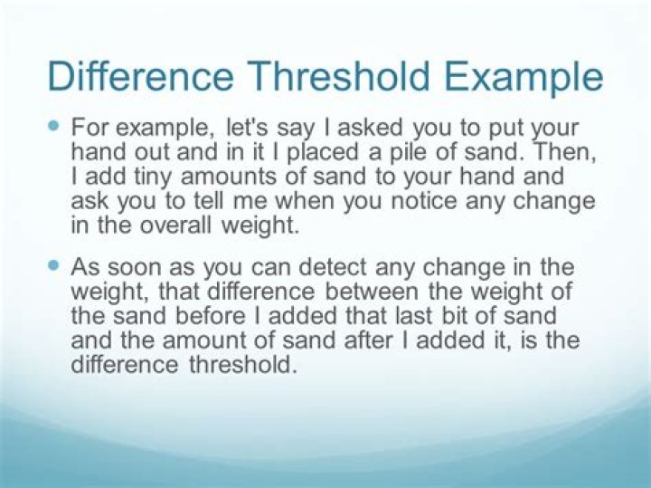 A difference threshold is the minimum amount that something needs to change in order for a person to notice a difference 50% of the time. ... For example, if I were to give you a pile of five marshmallows and then give you one more, you'd probably notice the difference.