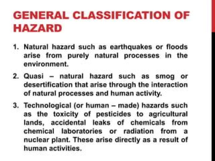 quasi-natural hazards - such as smog or desertification, which arise through the interaction of natural processes and human activities. ... Such hazards arise directly as a result of human activities.