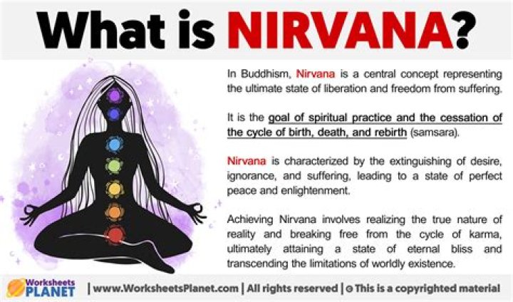 Nirvana is a place of perfect peace and happiness, like heaven. In Hinduism and Buddhism, nirvana is the highest state that someone can attain, a state of enlightenment, meaning a person's individual desires and suffering go away.