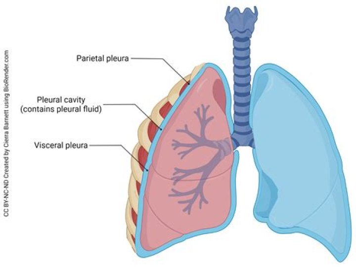 A pleura is a serous membrane that folds back on itself to form a two-layered membranous pleural sac. The outer layer is called the parietal pleura and attaches to the chest wall. The inner layer is called the visceral pleura and covers the lungs, blood vessels, nerves, and bronchi.