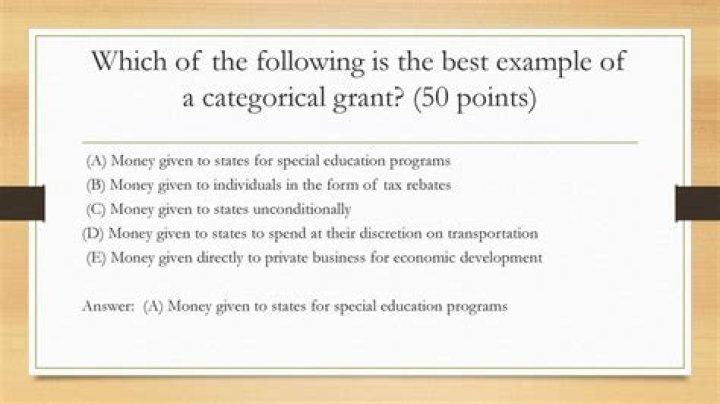 28 related questions foundWhat are 3 examples of categorical grants?