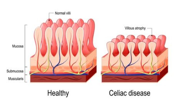 When people with celiac disease eat gluten (a protein found in wheat, rye and barley), their body mounts an immune response that attacks the small intestine. These attacks lead to damage on the villi, small fingerlike projections that line the small intestine, that promote nutrient absorption.