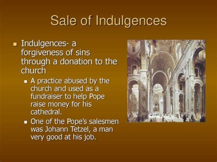 An indulgence reduced the Church's punishment for a sin. Indulgences were controversial because although the Church had given out indulgences before, they never sold them. In the 1500s, however, the pope needed money to repair the Church of St. Peter's in Rome.