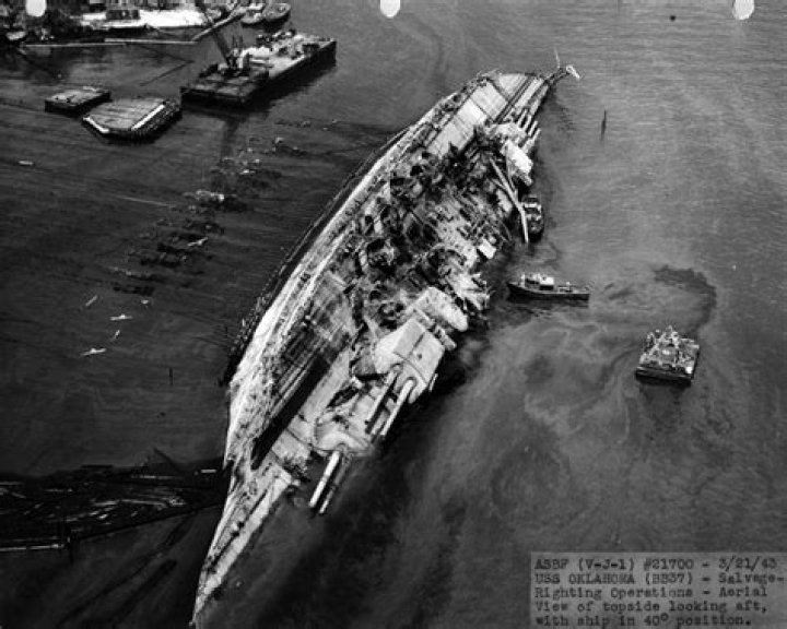 On 7 December 1941, during the Japanese attack on Pearl Harbor, several torpedoes from torpedo-bomber airplanes hit the Oklahoma's hull and the ship capsized. ... Unlike most of the other battleships that were recovered following Pearl Harbor, Oklahoma was too damaged to return to duty.