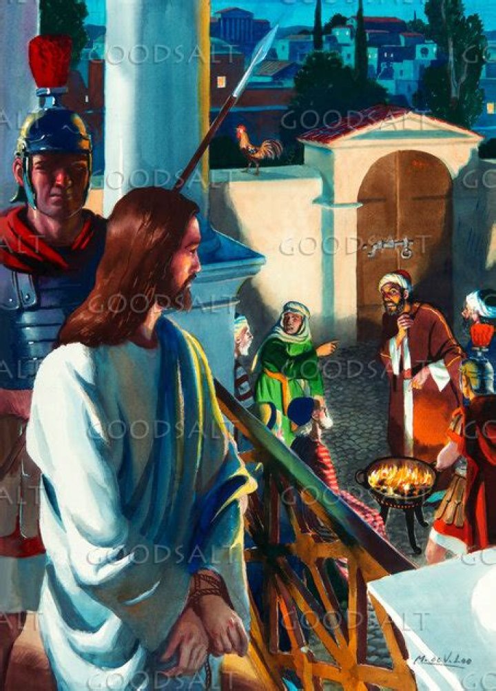 The Lord turned and looked straight at Peter. Then Peter remembered the word the Lord had spoken to him: “Before the rooster crows today, you will disown me three times.” And he went outside and wept bitterly. John 18:15–17,25–27. Simon Peter and another disciple were following Jesus.