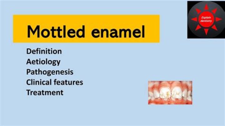 Dental fluorosis. Other names. Mottled enamel. Mild fluorosis: in its usual mildest form, fluorosis appears as opaque white patches on the enamel. Specialty.