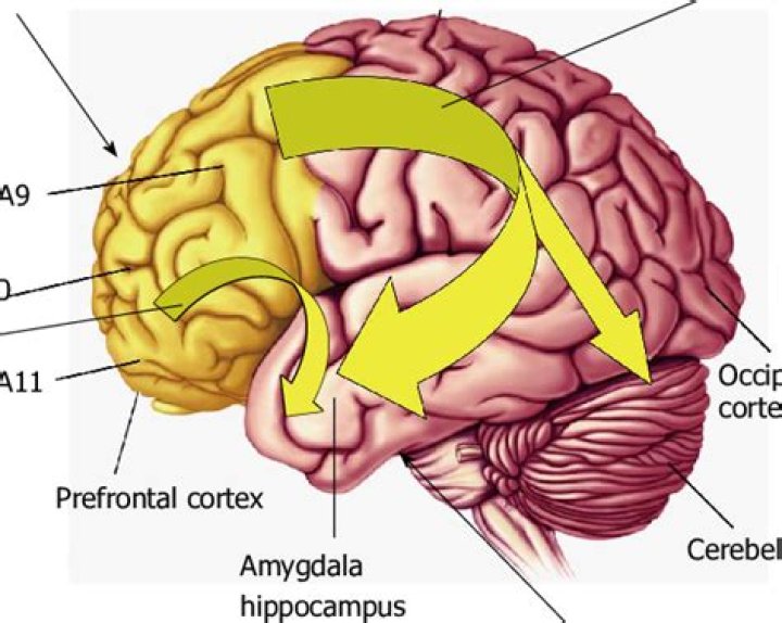 The orbitofrontal cortex is the area of the prefrontal cortex that sits just above the orbits (also known as the eye sockets). It is thus found at the very front of the brain, and has extensive connections with sensory areas as well as limbic system structures involved in emotion and memory.