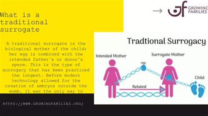 It's a woman who gets artificially inseminated with the father's sperm. They then carry the baby and deliver it for you and your partner to raise. A traditional surrogate is the baby's biological mother. That's because it was their egg that was fertilized by the father's sperm.