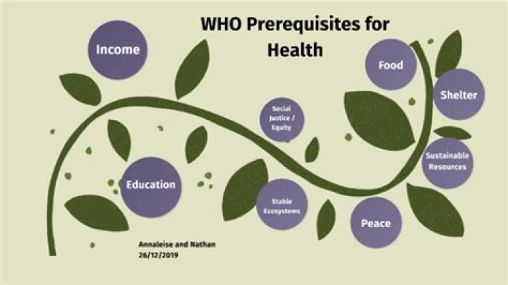 The prerequisites for health are peace, shelter, education, social security, social relations, food, income, the empowerment of women, a stable eco-system, sustainable resource use, social justice, respect for human rights, and equity.