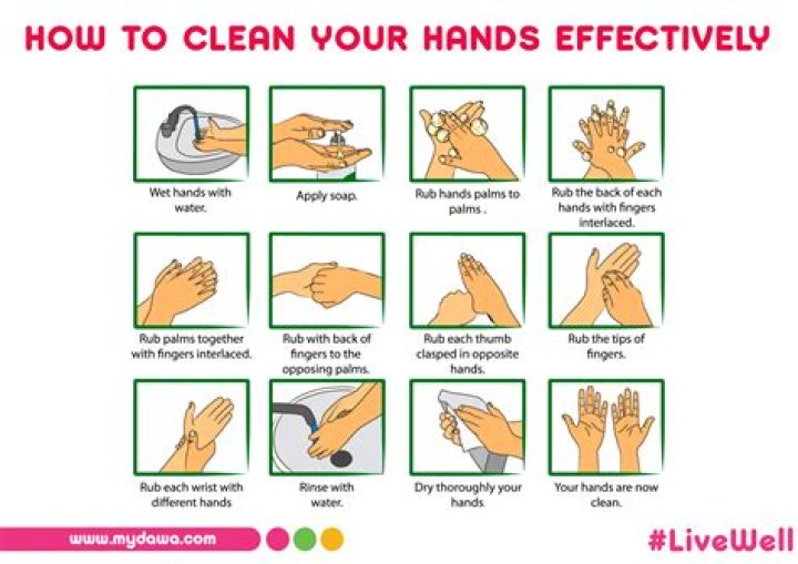 - Use 1 hand to rub the back of the other hand and clean in between the fingers. ...