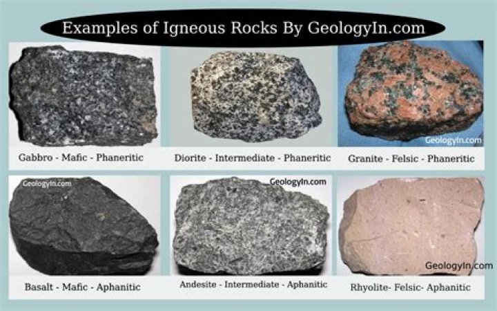 Extrusive rocks (such as basalt, rhyolite, andesite and obsidian) and intrusive rocks (such as granite, granodiorite, gabbro and peridotite) contain primary minerals including quartz, feldspar, plagioclase, muscovite, biotite, amphibole, pyroxene and olivine in varying concentrations.