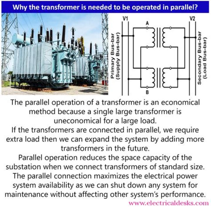 The transformers are connected in parallel when load on one of the transformers is more than its capacity. The reliability is increased with parallel operation than to have single larger unit. The cost associated with maintaining the spares is less when two transformers are connected in parallel.