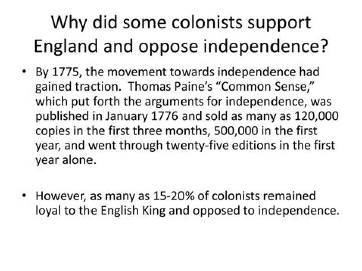 Why did colonists oppose independence?