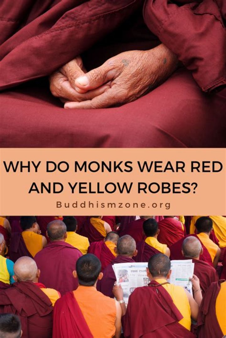 Though yellow is still present in Tibetan monk's robes, the dominant hue is burgundy red. The original monk's robes were designed for warm weather and adapted to Tibet's cold climate by adding upper garments.