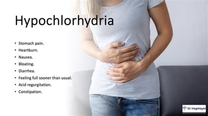 An individual with hypochlorhydria is unable to produce enough hydrochloric acid (HCL) in the stomach. Stomach acid, along with several enzymes, helps to break down food. Other functions of this acid include: aiding the body in absorbing certain nutrients, such as protein and vitamin B-12.