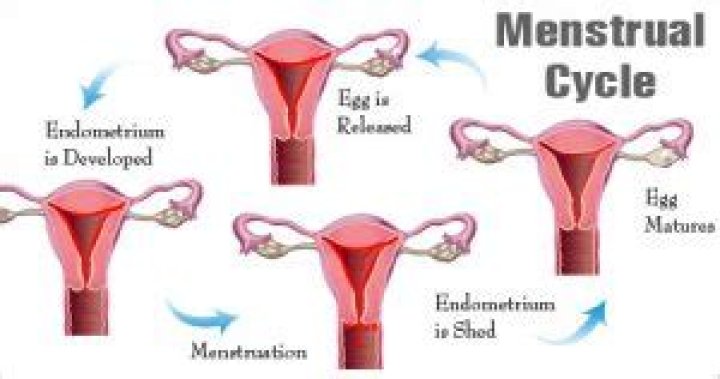 The menstrual cycle occurs due to the rise and fall of hormones. This cycle results in the thickening of the lining of the uterus, and the growth of an egg, (which is required for pregnancy). ... If pregnancy does not occur, the lining is released in what is known asmenstruation.