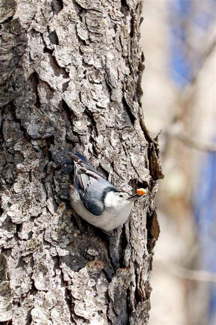 But why do nuthatches walk down the trunks of trees, anyway? ... Nuthatches store seeds in the bark of trees. Caching seeds so they can be seen going down the tree may keep them safe from other birds going up the tree, he said. "That's a very important part of their winter diet.