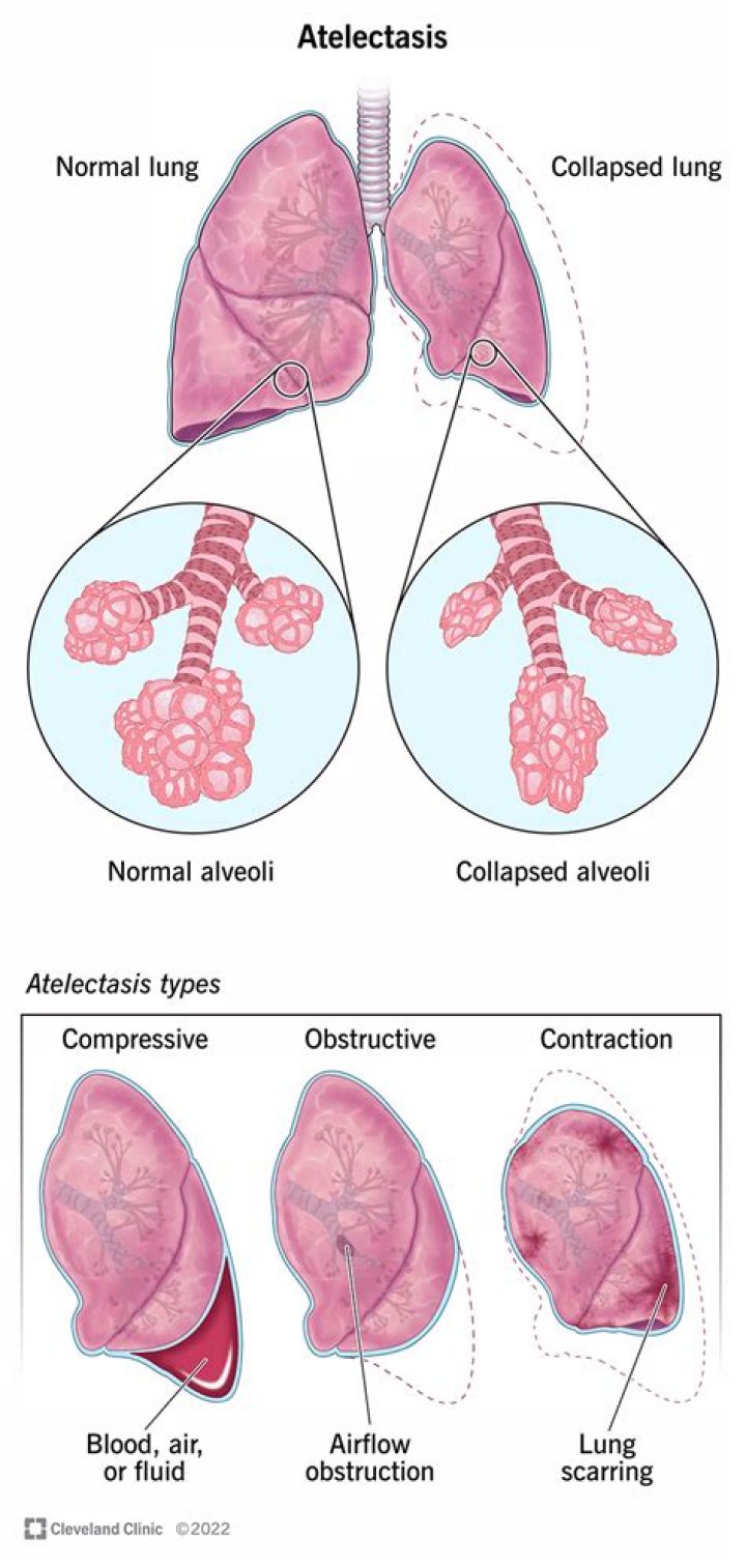 Atelectasis is one of the most common breathing (respiratory) complications after surgery. It's also a possible complication of other respiratory problems, including cystic fibrosis, lung tumors, chest injuries, fluid in the lung and respiratory weakness.